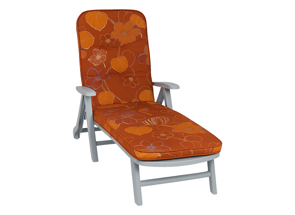 Die Liegenauflage im sommerlichen Design Meran terra, ruft direkt nach dem Sommer. Die kräftigen, fröhlichen Farben in Kombination mit Blumen und Blüten, verbreiten richtig gute Laune. Das ca. 7 cm starke Polster bietet höchsten Liegekomfort. So können Sie das nächste Sonnenbad auf Ihrer Gartenliege in vollen Zügen genießen. Um das Gesamtbild der Auflage ansprechend abzurunden, sind die Kissenkanten mit einer farblich abgestimmten Zierkordel eingefasst.