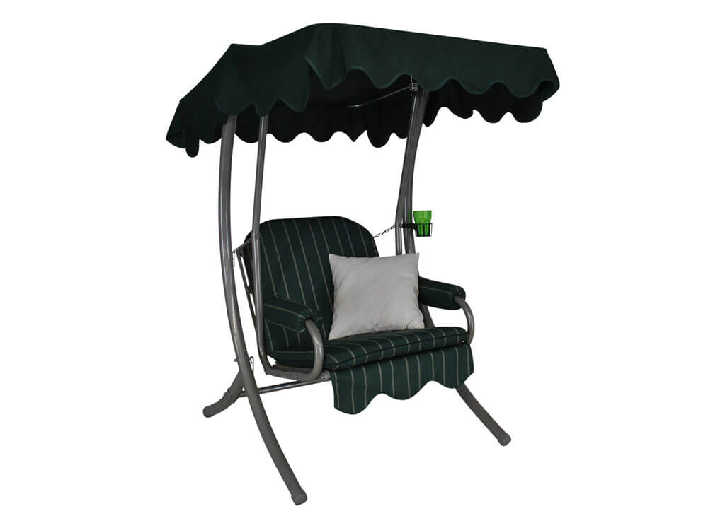 Gönnen Sie sich Ihre ganz persönliche Auszeit – mit unserer 1-Sitzer Hollywoodschaukel Faro grün! Das kompakte Design ist ideal für Balkon, Terrasse oder kleine Gartenbereiche und schafft einen gemütlichen Rückzugsort nur für Sie. Die weich gepolsterten, grün gestreiften Kissen sorgen für angenehmen Sitzkomfort und bringen frische, sommerliche Akzente in Ihr Zuhause. Robust verarbeitet und stilvoll gestaltet, vereint diese Einzelschaukel Komfort und Eleganz auf kleinem Raum. Jetzt bestellen und entspannt dem Alltag davonschaukeln!