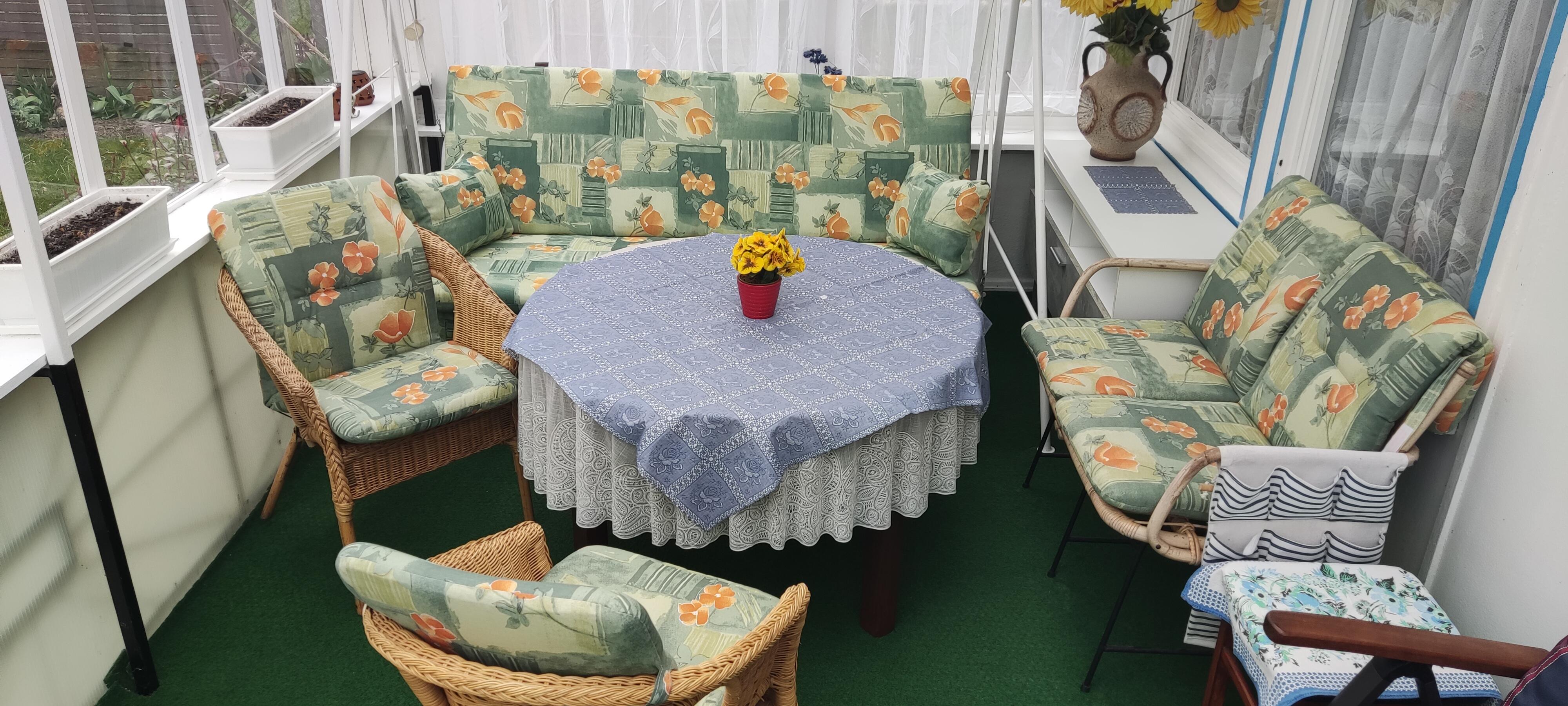 Zuerst Auflage für alte DDR Hollywoodschaukel gekauft, Maße waren perfekt und gleich noch 2 Kissen dabei, super. Dann eigentlich ungeplant, noch 2 Stühle mit Hochlehnern bestückt, würden aber eingekürzt, Tieflechner waren nicht lieferbar und noch ein kleines Bank mit zwei Hochlehnern versehen. Terrasse sieht aus wie neu 👍